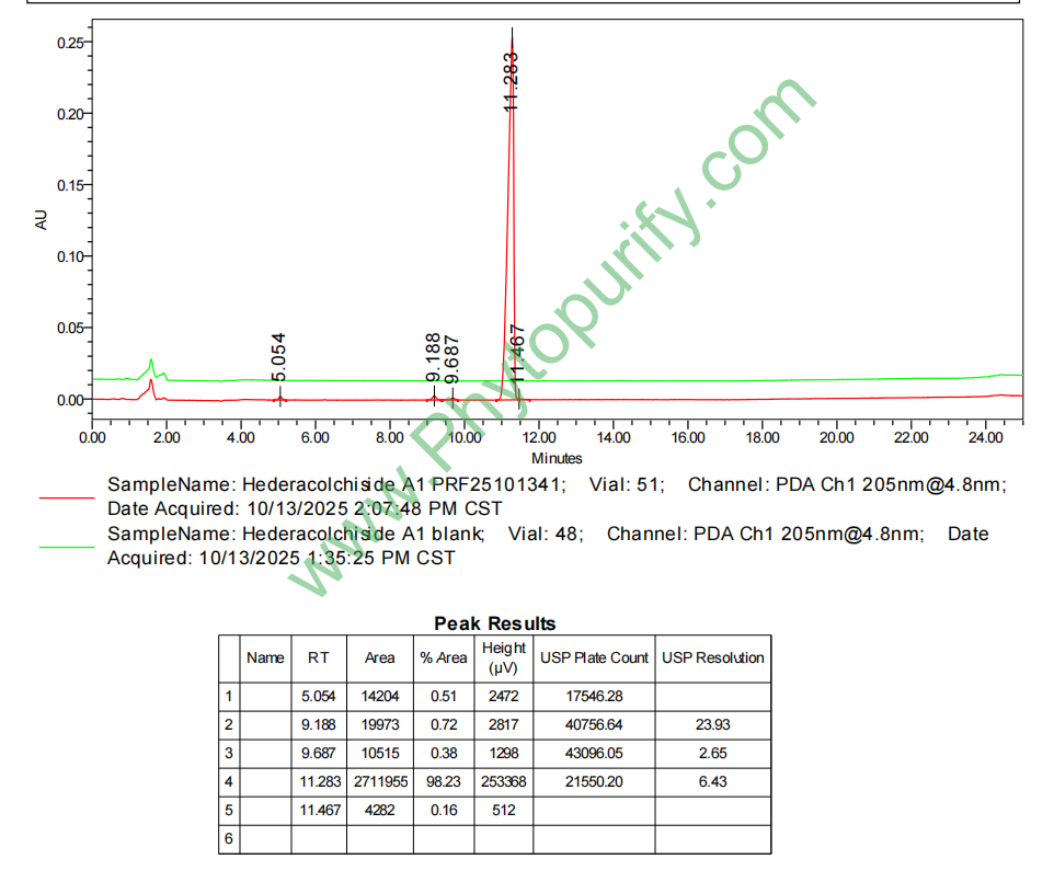 HPLC of Hederacolchiside A1
