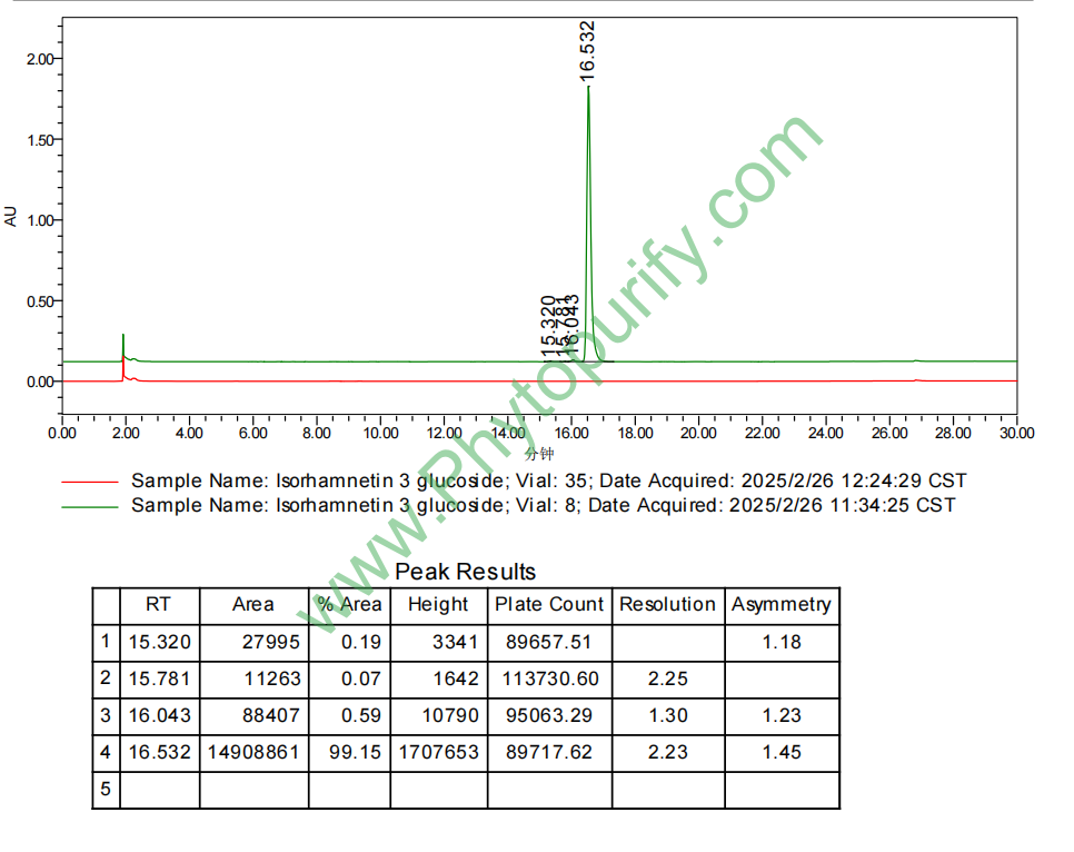 HPLC of Isorhamnetin-3-O-beta-D-Glucoside