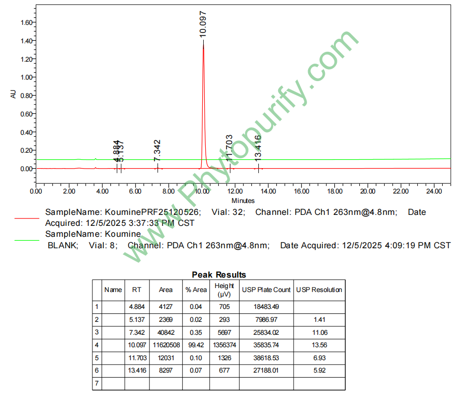 HPLC of Koumine