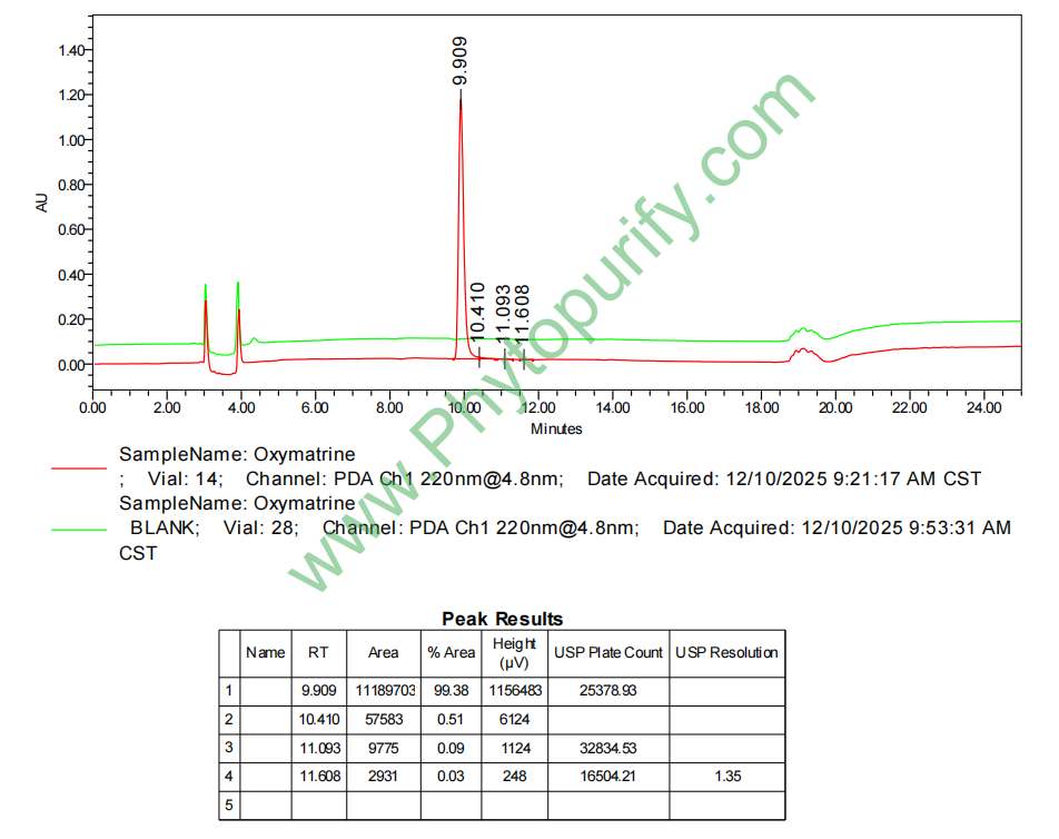 Botanical Source: Alkaloid from Sophora flavescens, Sophora macrocarpa, Sophora alopecuroides, Ammothamnus lehmannii (preferred genus name Sophora), Euchresta horsfeldii and other plants (Leguminosae)
