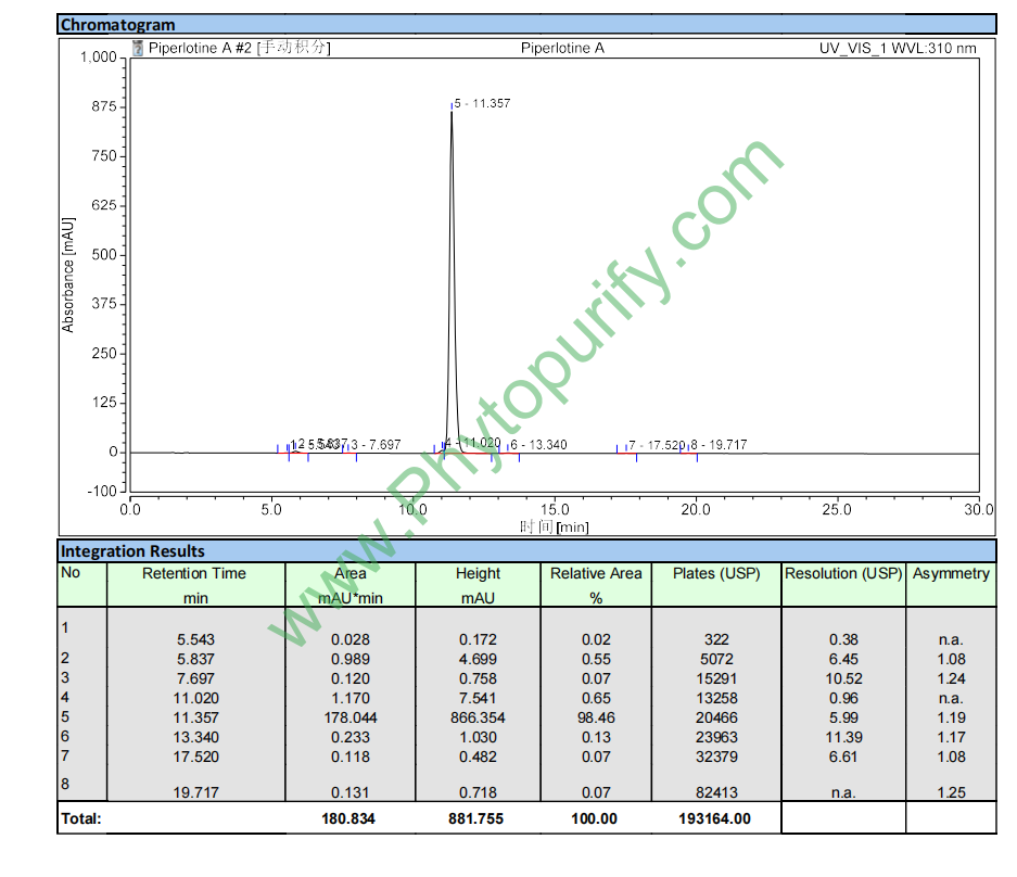 HPLC of Piperlotine A