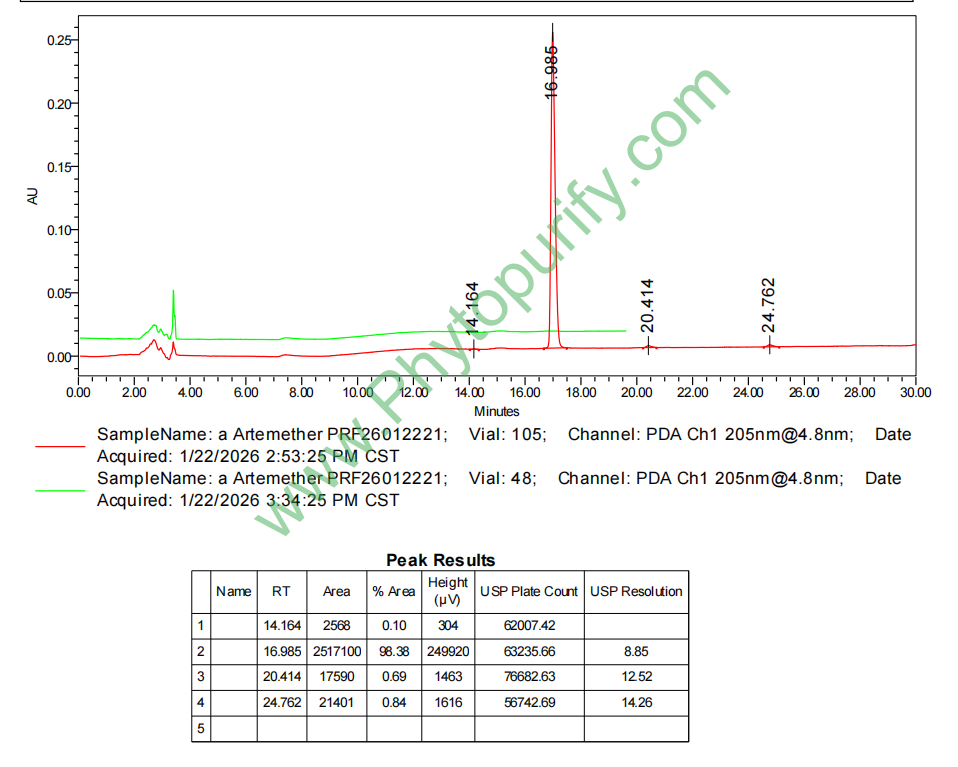 HPLC of α-Artemether